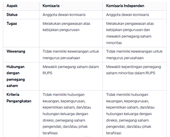 Sementara itu, komisaris independen adalah komisaris yang tidak memiliki keterkaitan keuangan, kepemilikan saham, hubungan keluarga, atau keterkaitan manajemen dengan direksi, pemegang saham pengendali, atau pihak terafiliasi melansir OCBC.